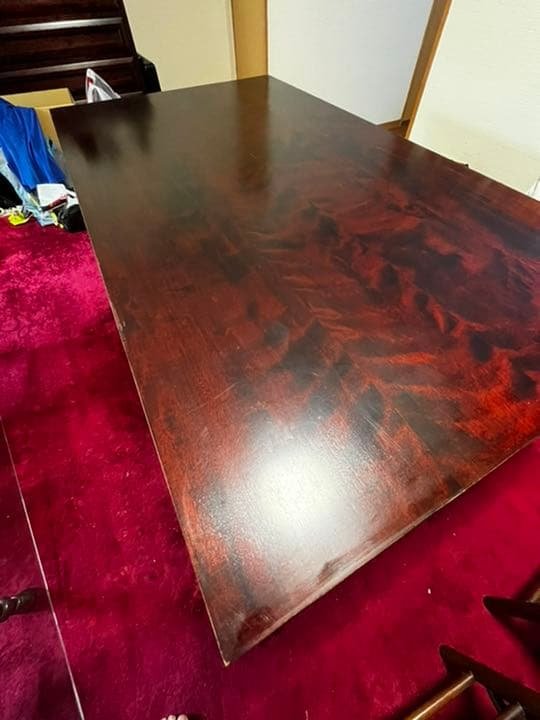 - ・使いやすいです。好きな場所に座れるし、テーブル脚が邪魔になりません。 ・天板裏に柱を立てて足を連結した後、脚を掴んで引き起こしました。重量がありますが安定性も十分です。他のサイトでは、天板外周に人が40kg程荷重しても転倒の恐れがないと画像入りで説明あり。 ・熱いものを置くと熱で塗料が白っぽくなることがあるので注意が必要です。 ・120cm四方の1ミリ厚の透明塩ビマットを載せて、裏側からマーカーで直径に相当する円を描いてハサミでカット。案外正確にカットできました。これで安心。