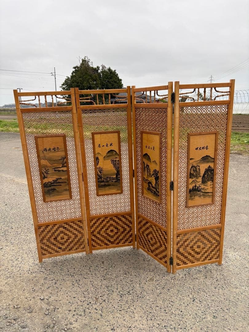 衝立です。【おすすめポイント】◎和風・和モダンやアジアンスタイルなどのインテリアにピッタリだと思います。◎木製でしっかりとした作りですが傷や汚れ等はありますのでご了承下さい。【詳細】●サイズ横120cm高さ160.5cm素人の採寸ですので若干の誤差はご了承ください。梱包・発送頼める便なので配送料で12000円かかります。●状態:個人保管・検品のため見落としがある場合がございます。万が一、小さな見落としがあった場合申し訳ありませんが返品キャンセルはできませんのでご了承下さい。ご理解頂ける方にお願い致します。中古品ということをご理解いただいた上でご購入をお願いします。●その他、注意事項:自宅にて保管していました。細かいデザインなどは写真にてご確認ください。