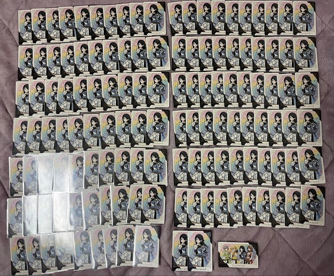- 3つのビニール袋に分けられて入れられていました。 残念ながら1枚もラメ入りカードやサイン入りカードはありませんでしたが、カードには傷などはない状態で届いたのが良かったです。 (写真は開封した後に撮りました)